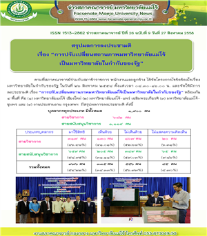 สรุปผลการลงประชามติเรื่อง “การปรับเปลี่ยนสถานภาพมหาวิทยาลัยแม่โจ้เป็นมหาวิทยาลัยในกำกับของรัฐ” เมื่อวันที่ ๒๖ สิงหาคม ๒๕๕๘ ตั้งแต่เวลา ๐๘.๓๐-๑๖.๐๐ น.