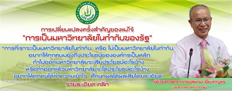 3. ข่าวความคืบหน้า มหาวิทยาลัยแม่โจ้ ออกนอกระบบ