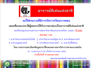 2. ประกาศ หลักเกณฑ์การคัดเลือกอาจารย์ดีเด่นแห่งชาติ