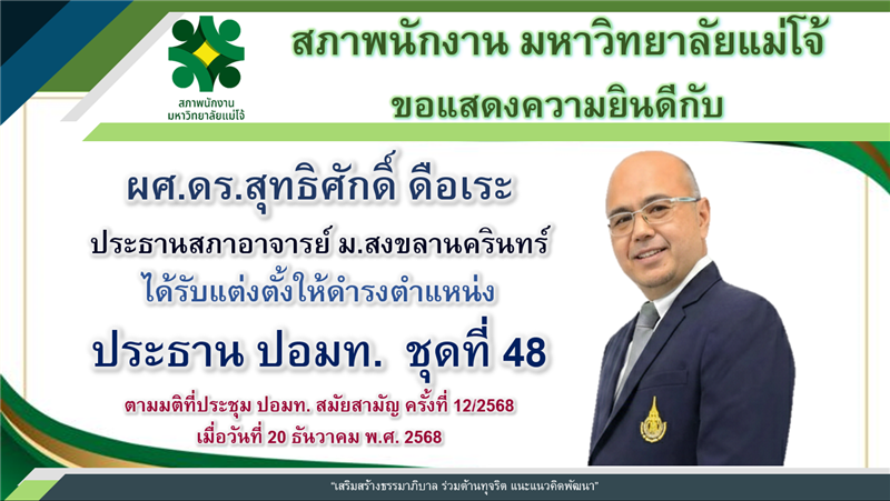 สภาพนักงาน มหาวิทยาลัยแม่โจ้ ขอแสดงความยินดีกับ