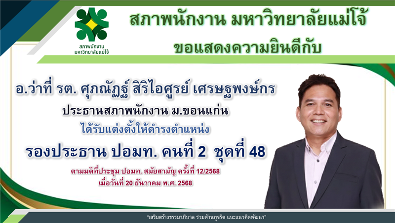 สภาพนักงาน มหาวิทยาลัยแม่โจ้ ขอแสดงความยินดีกับ